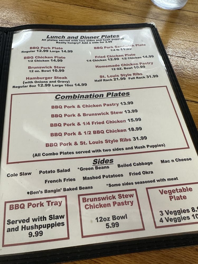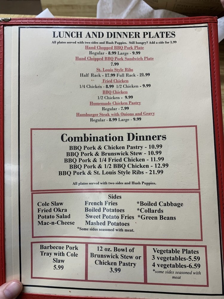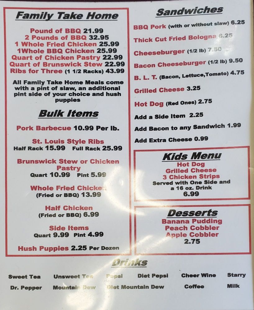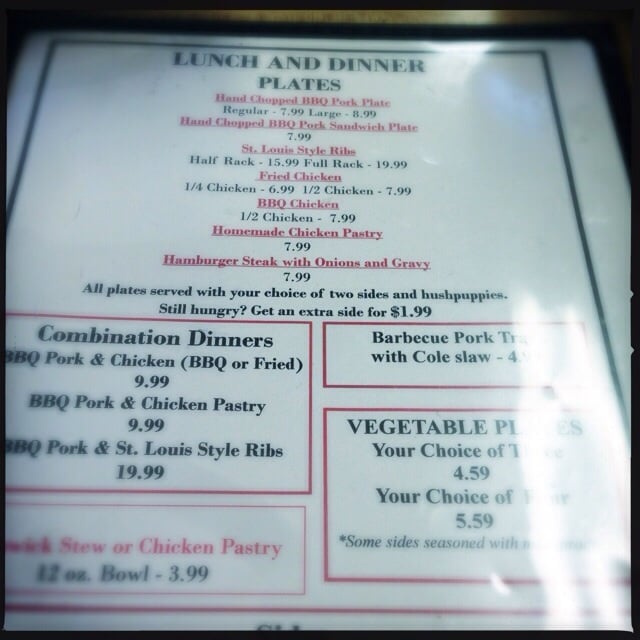 Ole Time Barbecue Menu